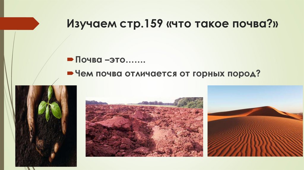 Изучаем стр.159 «что такое почва?»Почва –это…….