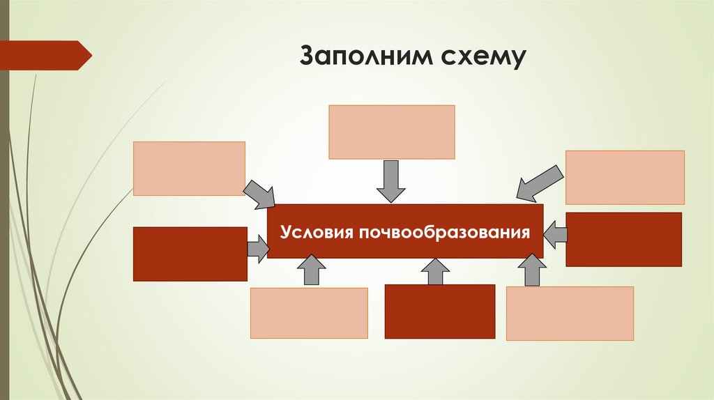 Заполним схемуУсловия почвообразования