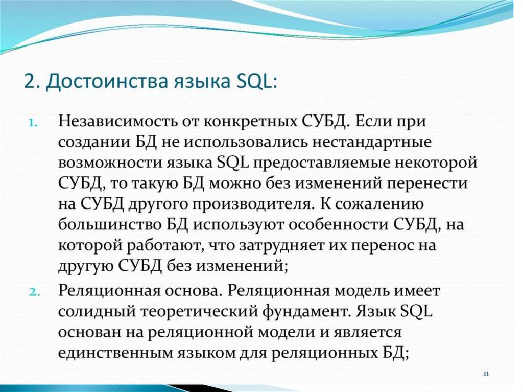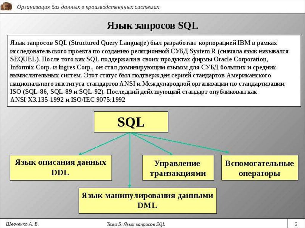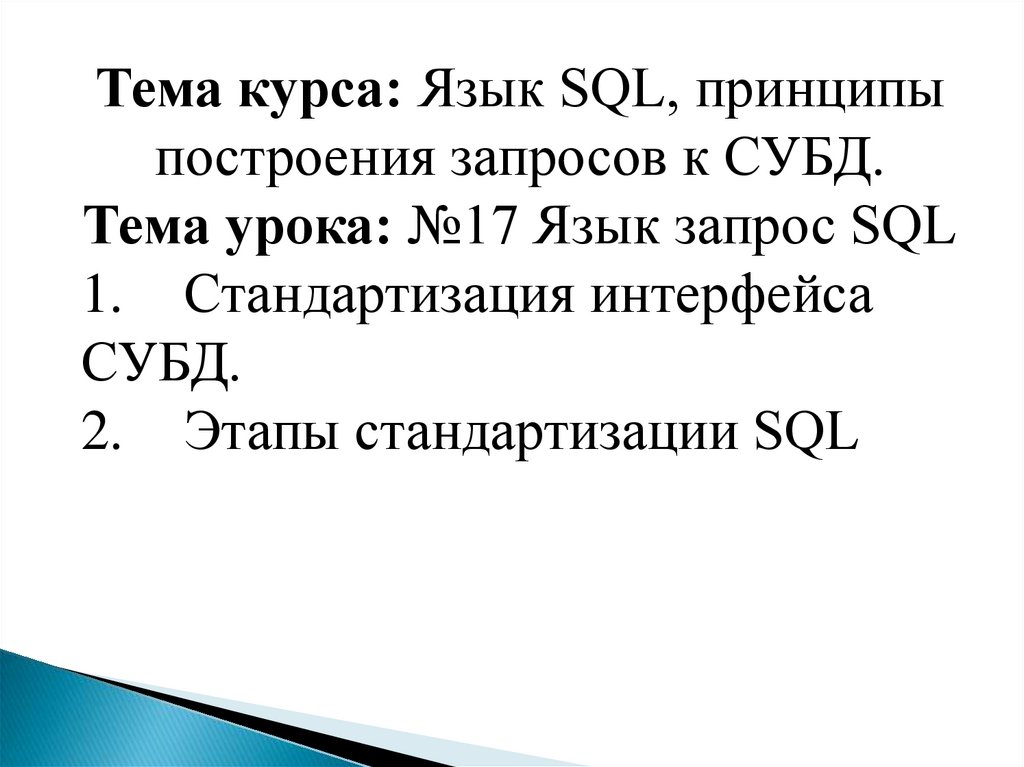 Тема курса: Язык SQL, принципыпостроения запросов к СУБД.