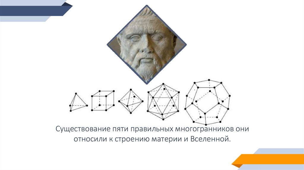 Существование пяти правильных многогранников ониотносили к строению материи и Вселенной.