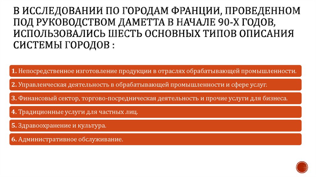 окажутся стагнирующие города со слабой активностью по всем шести функциональным