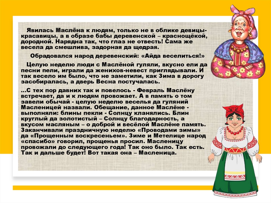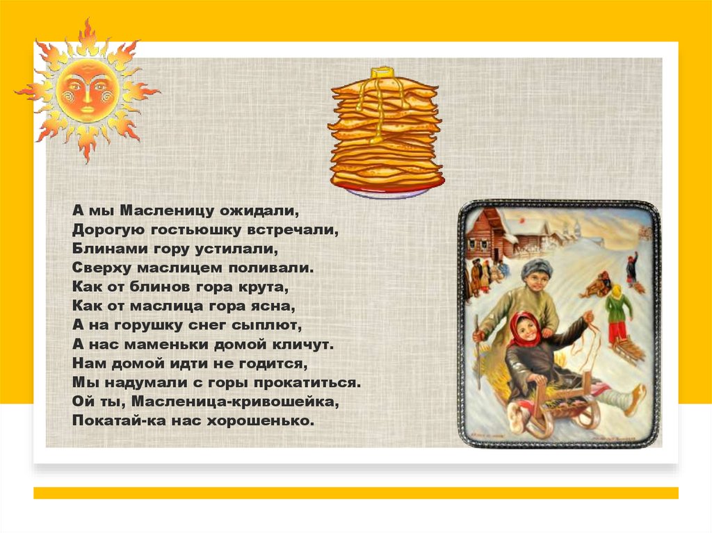 улыбалась Маслёна– Батюшке родимому кланялась.