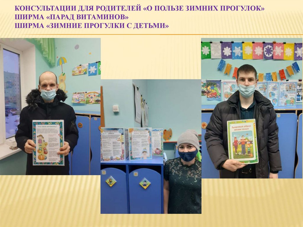 КОНСУЛЬТАЦИИ ДЛЯ РОДИТЕЛЕЙ «О ПОЛЬЗЕ ЗИМНИХ ПРОГУЛОК»ШИРМА «ПАРАД ВИТАМИНОВ»