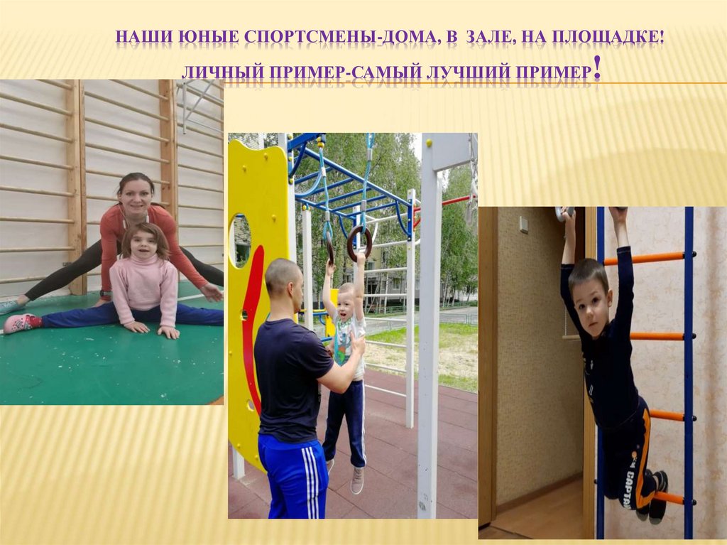 НАШИ ЮНЫЕ СПОРТСМЕНЫ-ДОМА, В ЗАЛЕ, НА ПЛОЩАДКЕ!ЛИЧНЫЙ ПРИМЕР-САМЫЙ ЛУЧШИЙ ПРИМЕР