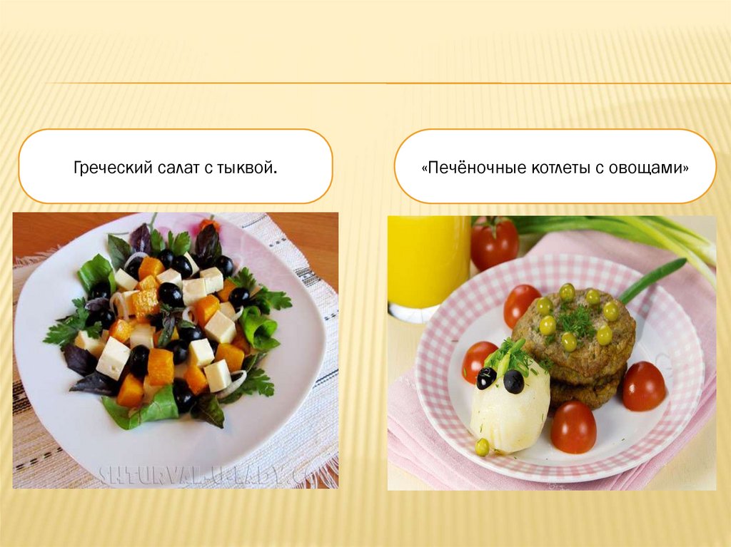 Греческий салат с тыквой.«Печёночные котлеты с овощами»