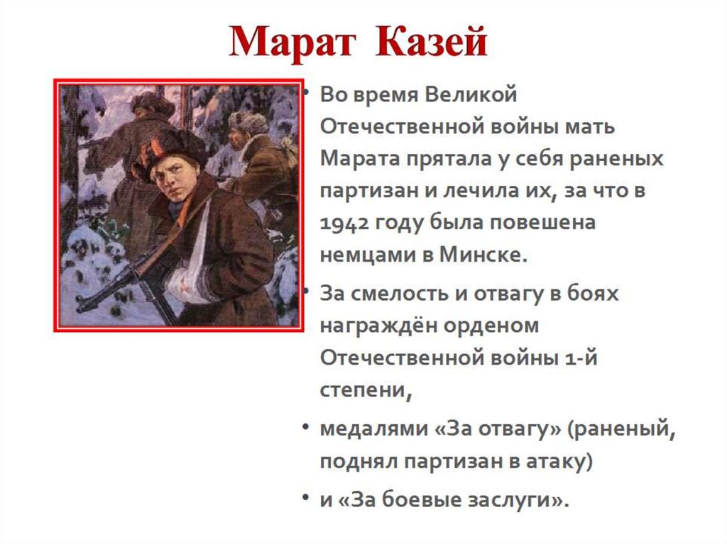 18-20 слайд :Марат Казей .