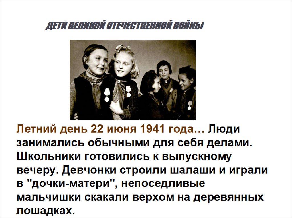 Содержание:1-3 слайд :жизнь детей до войны.