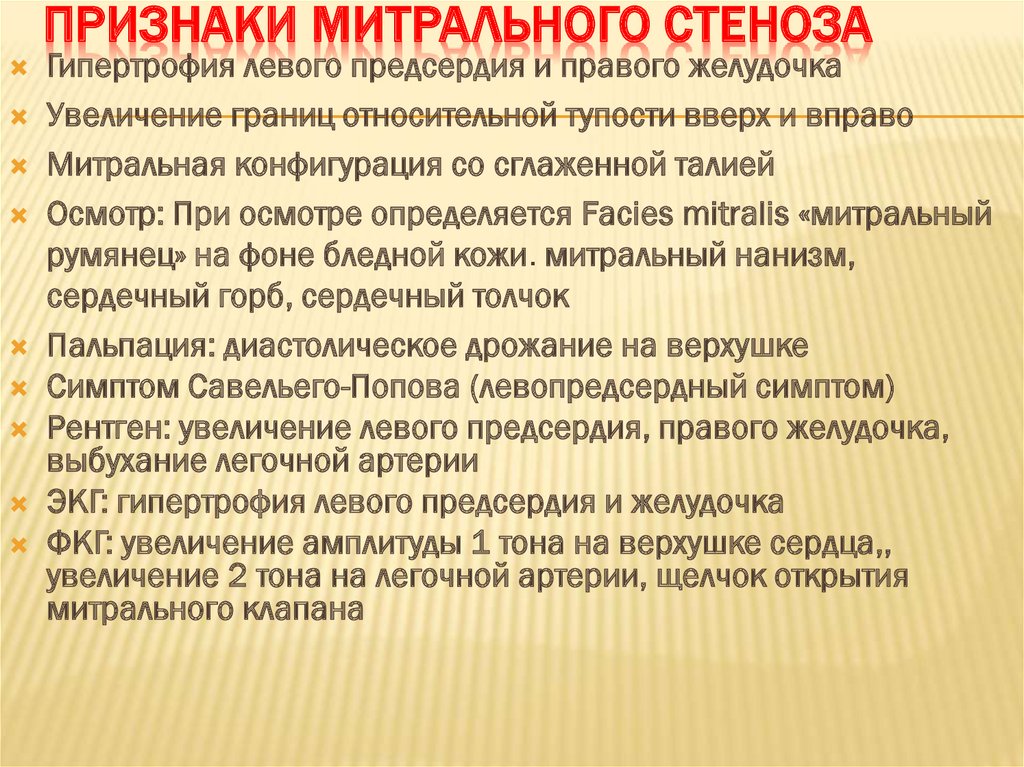 ПРИЗНАКИ МИТРАЛЬНОГО СТЕНОЗАГипертрофия левого предсердия и правого желудочка