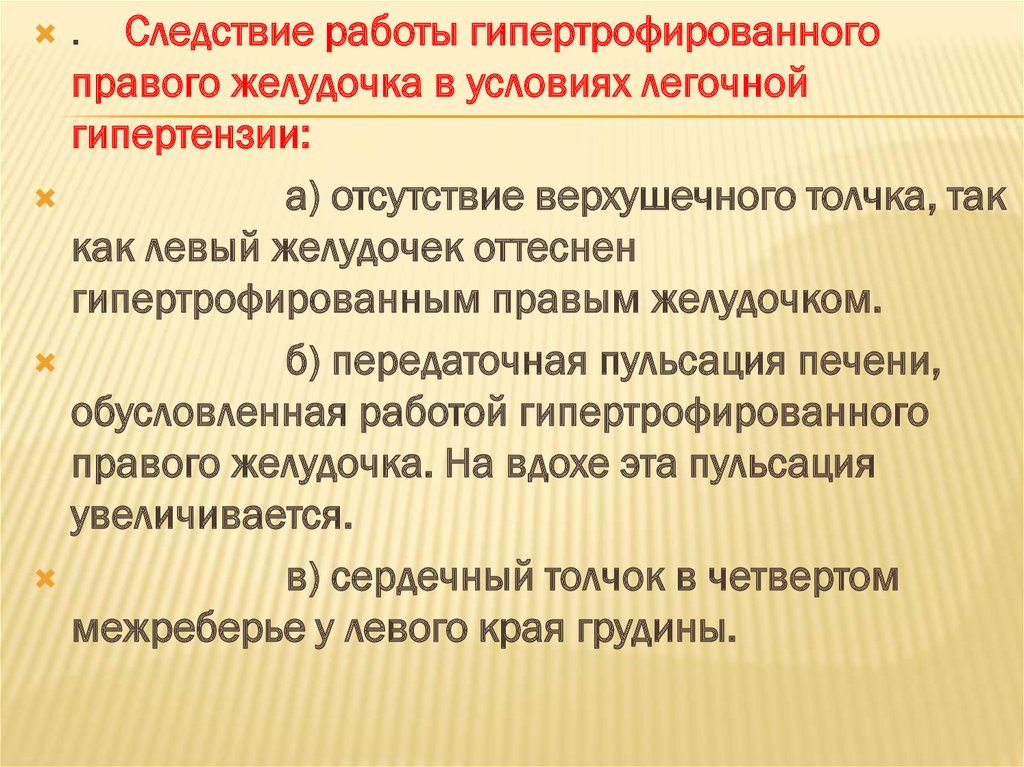 . Следствие работы гипертрофированногоправого желудочка в условиях легочной