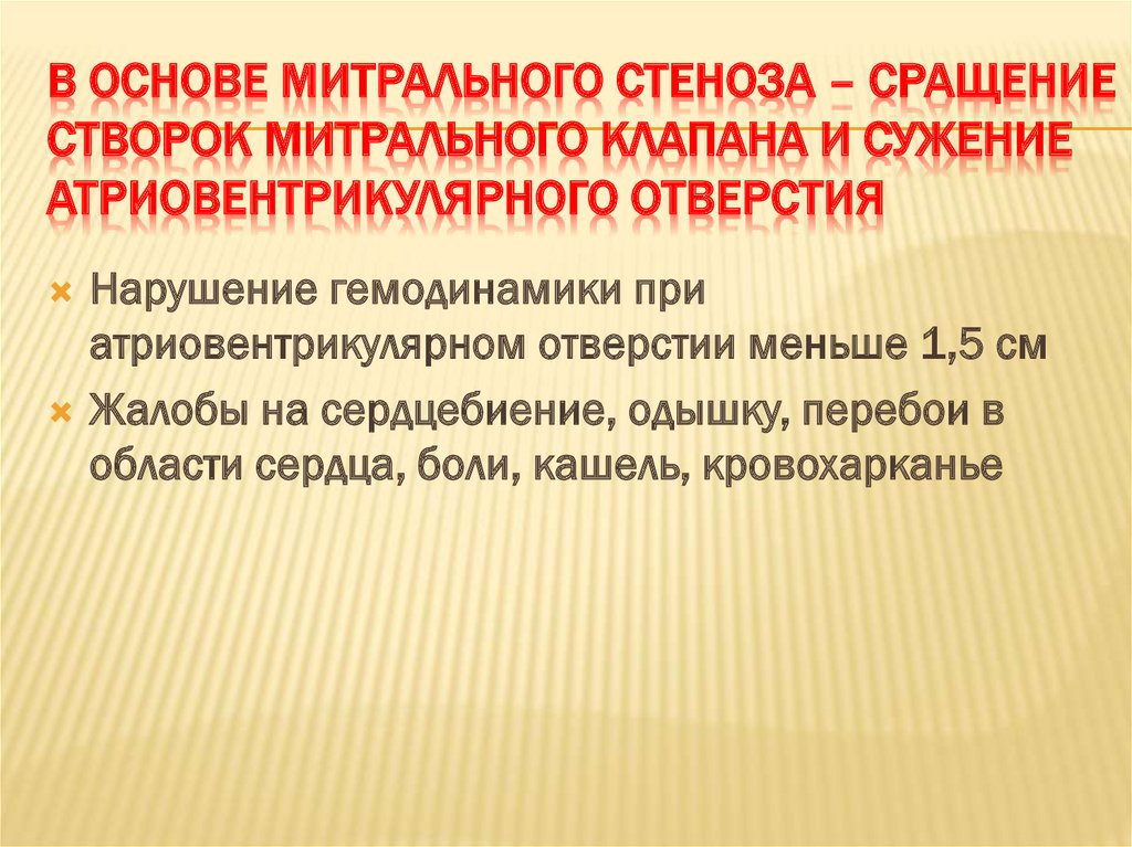 В ОСНОВЕ МИТРАЛЬНОГО СТЕНОЗА – СРАЩЕНИЕСТВОРОК МИТРАЛЬНОГО КЛАПАНА И СУЖЕНИЕ
