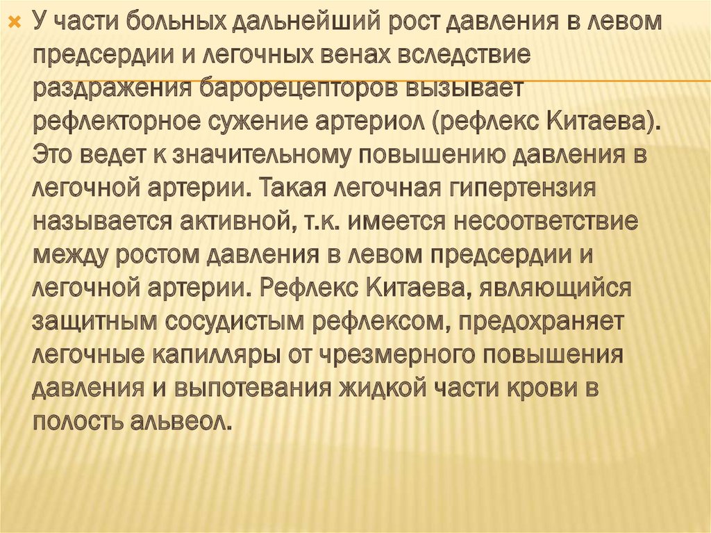 легочной артерии. Рефлекс Китаева, являющийся
