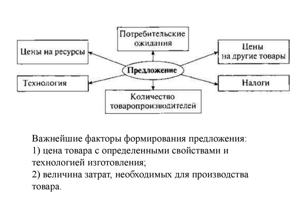 Важнейшие факторы формирования предложения:1) цена товара с определенными свойствами и