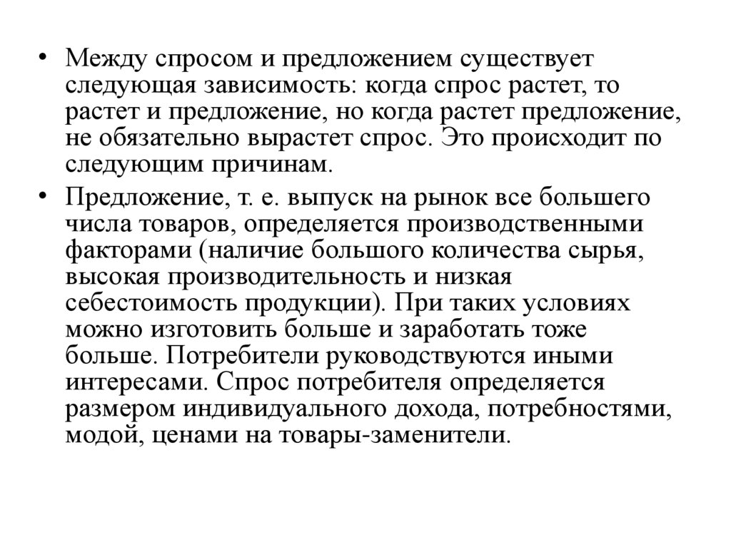 • Между спросом и предложением существуетследующая зависимость: когда спрос растет, то