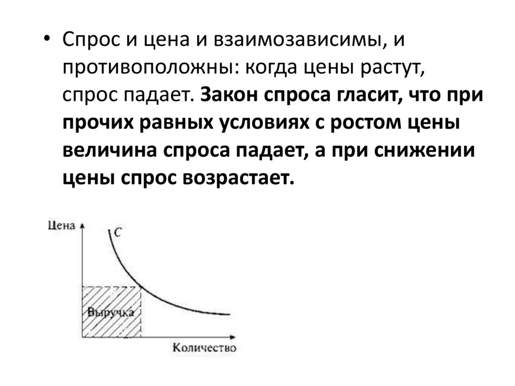 • Спрос и цена и взаимозависимы, ипротивоположны: когда цены растут,