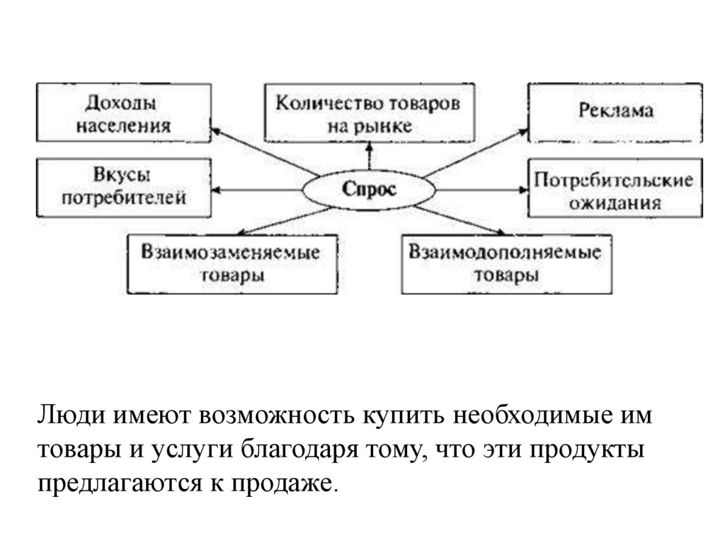 Люди имеют возможность купить необходимые имтовары и услуги благодаря тому, что эти продукты