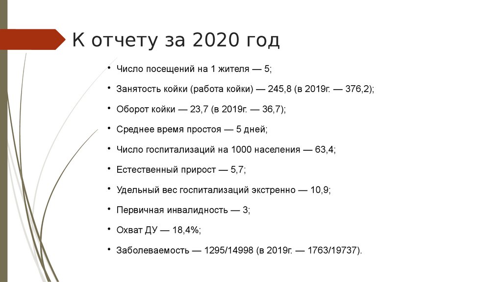 Оборот койки — 23,7 (в 2019г. — 36,7);