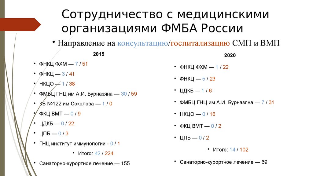 Сотрудничество с медицинскимиорганизациями ФМБА России