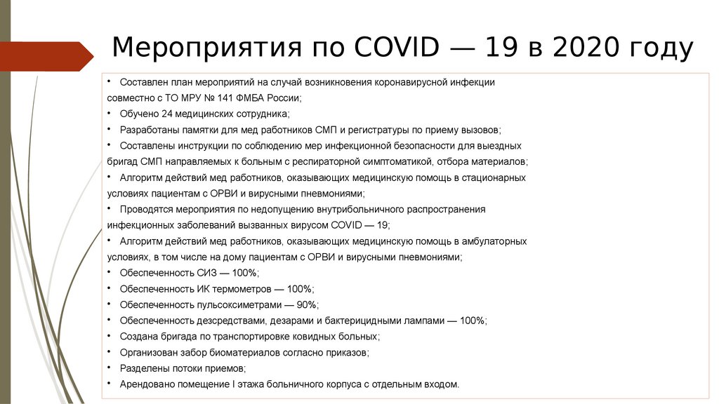 Мероприятия по COVID — 19 в 2020 годуСоставлен план мероприятий на случай возникновения коронавирусной инфекции