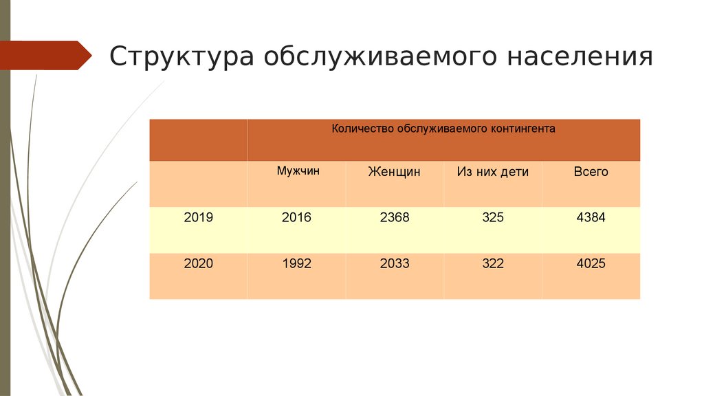 Структура обслуживаемого населенияКоличество обслуживаемого контингента