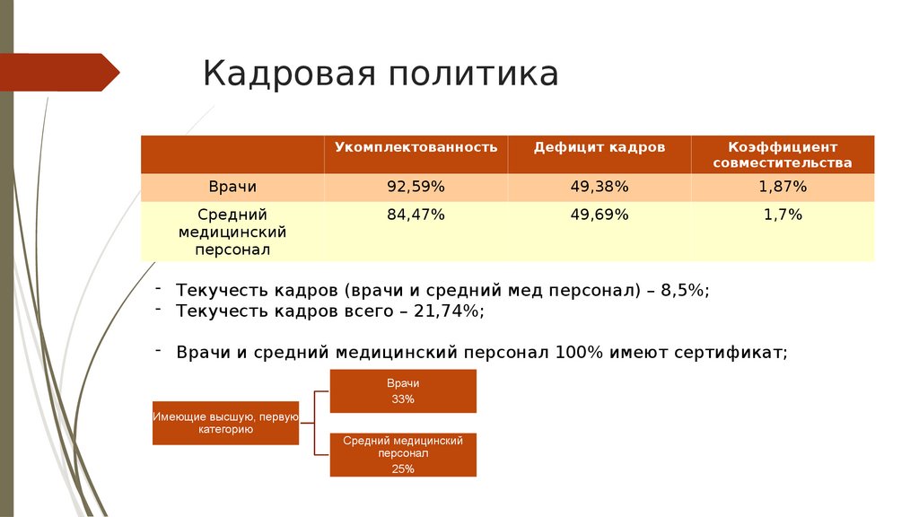 - Текучесть кадров (врачи и средний мед персонал) – 8,5%;