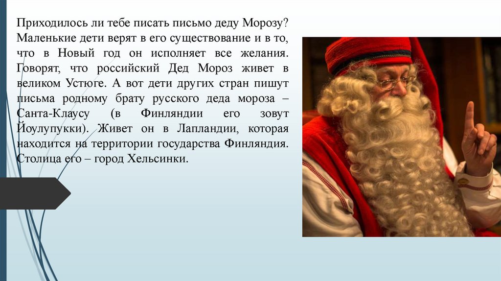 Приходилось ли тебе писать письмо деду Морозу?Маленькие дети верят в его существование и в то,