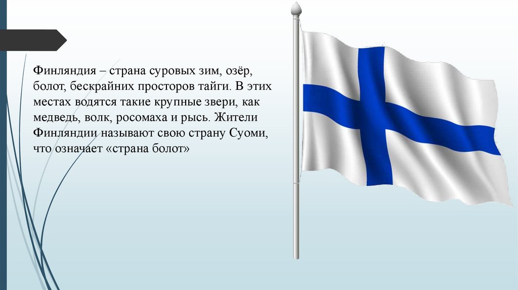 Финляндия – страна суровых зим, озёр,болот, бескрайних просторов тайги. В этих