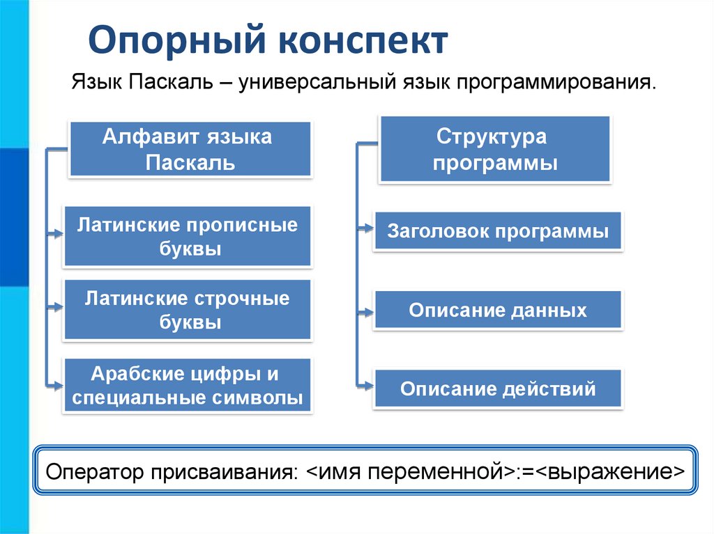 Опорный конспектЯзык Паскаль – универсальный язык программирования.