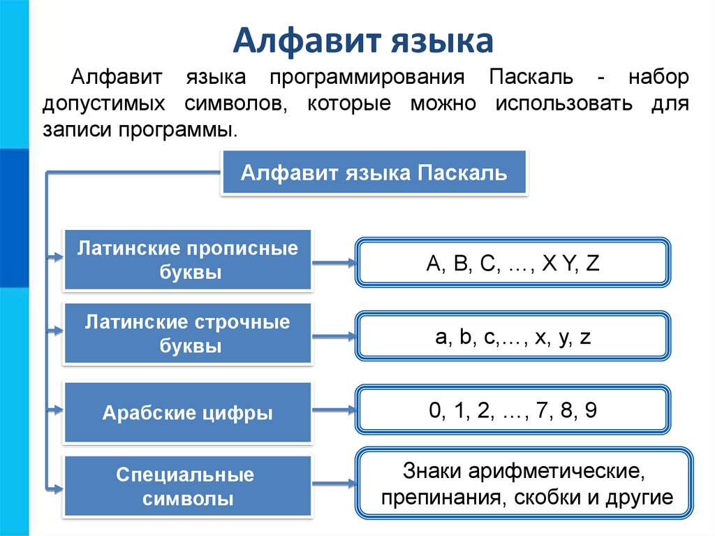 Алфавит языкаАлфавит языка программирования Паскаль - набор