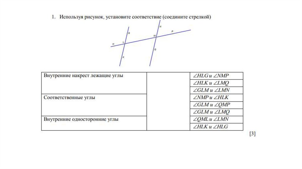 1. Один из углов, образованный при пересечении двух параллельных прямых секущей,
