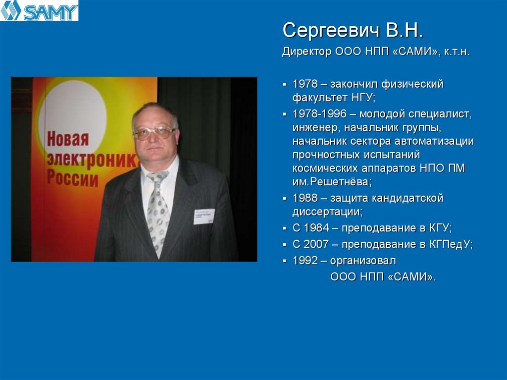 Сергеевич В.Н.Директор ООО НПП «САМИ», к.т.н.