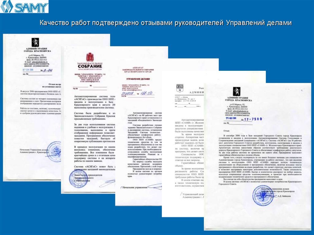 Качество работ подтверждено отзывами руководителей Управлений делами23.
