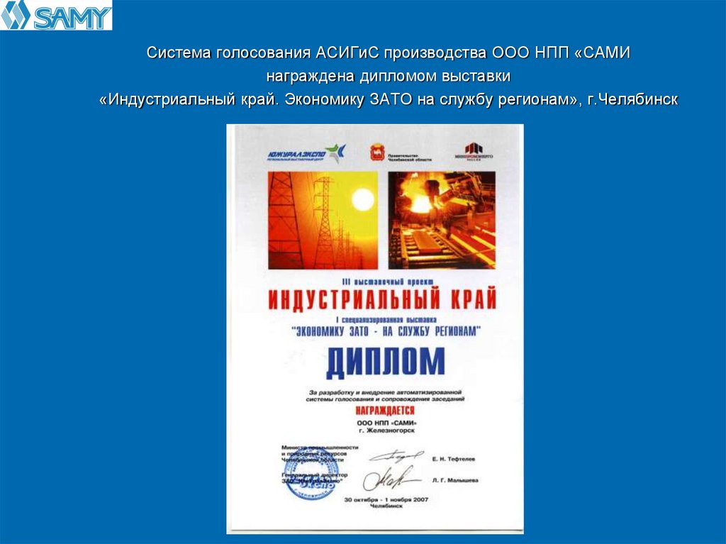 Система голосования АСИГиС производства ООО НПП «САМИнаграждена дипломом выставки