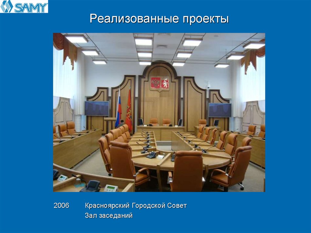 и/или проекторов, установленных в зале;