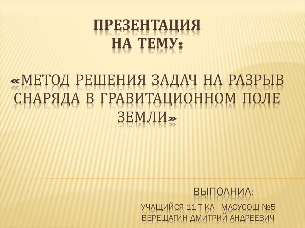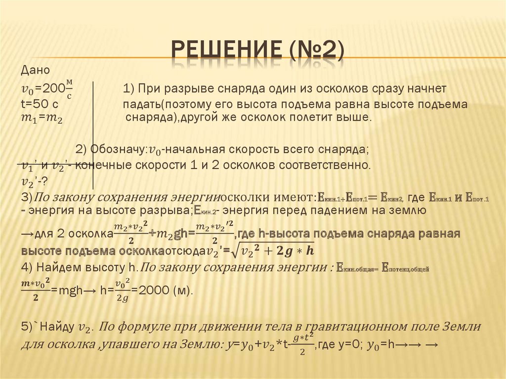 Метод решения задач на разрыв снаряда в гравитационном поле земли