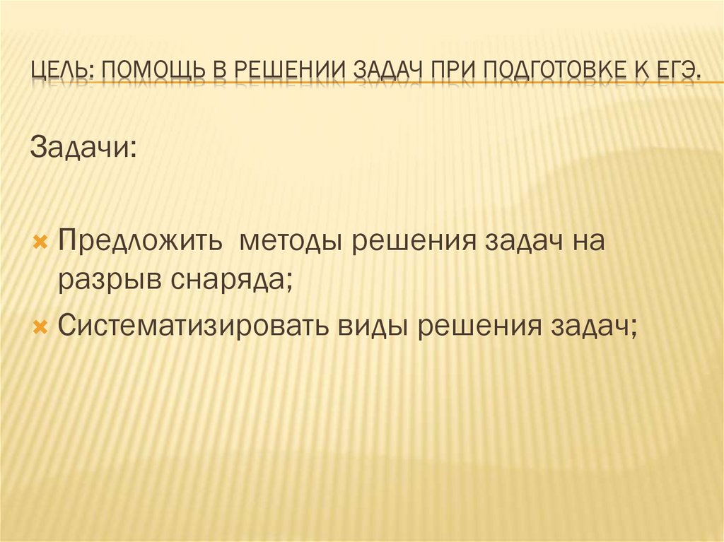 ЦЕЛЬ: ПОМОЩЬ В РЕШЕНИИ ЗАДАЧ ПРИ ПОДГОТОВКЕ К ЕГЭ.Задачи: