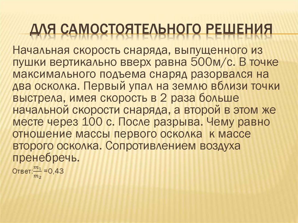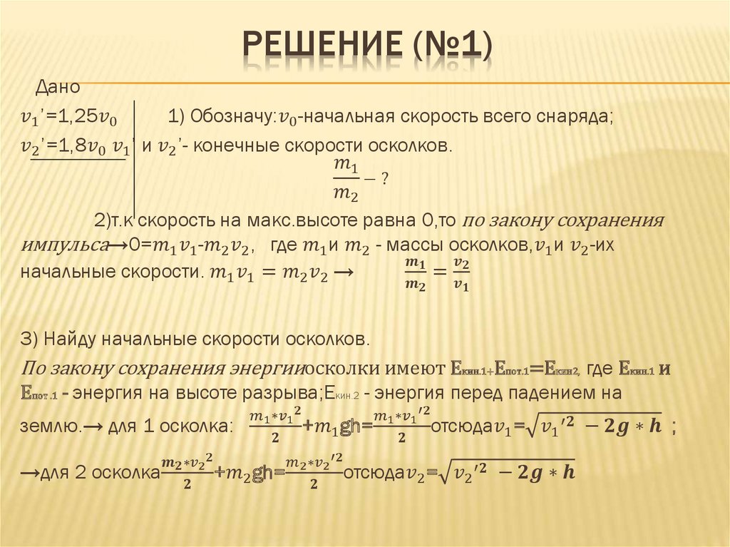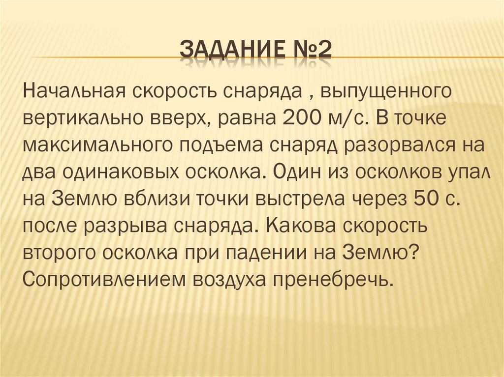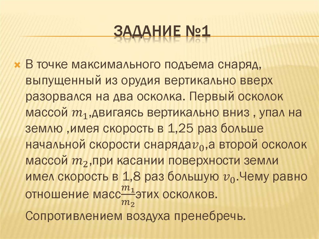 ЗАДАНИЕ №1В точке максимального подъема снаряд,