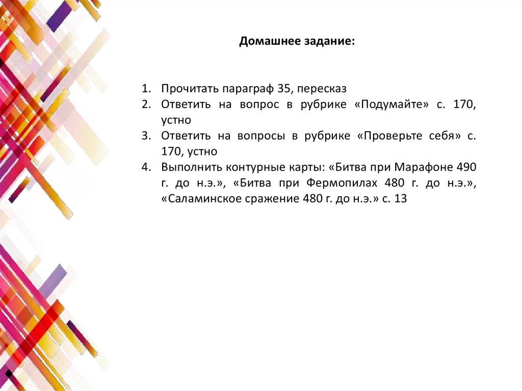 Домашнее задание:1. Прочитать параграф 35, пересказ