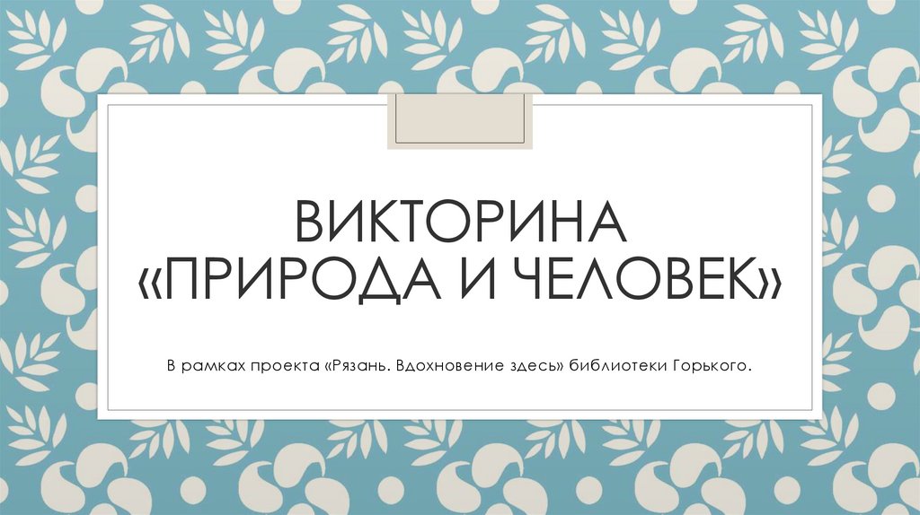 Викторина «природа и человек» в рамках проекта "Рязань. Вдохновение здесь" библиотеки Горького