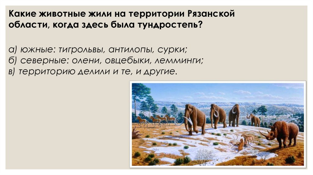 Какие животные жили на территории Рязанскойобласти, когда здесь была тундростепь?