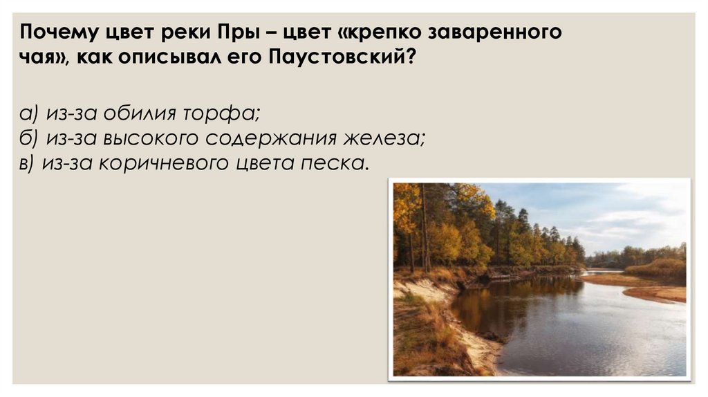 Почему цвет реки Пры – цвет «крепко заваренногочая», как описывал его Паустовский?