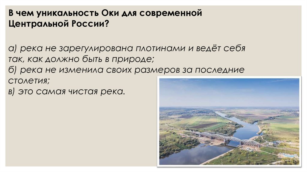 В чем уникальность Оки для современнойЦентральной России?