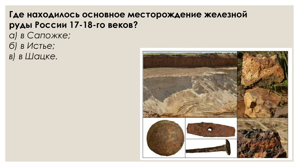 Где находилось основное месторождение железнойруды России 17-18-го веков?