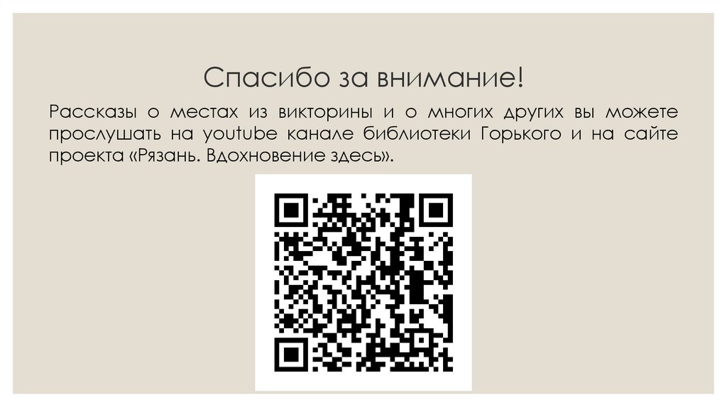 Спасибо за внимание!Рассказы о местах из викторины и о многих других вы можете