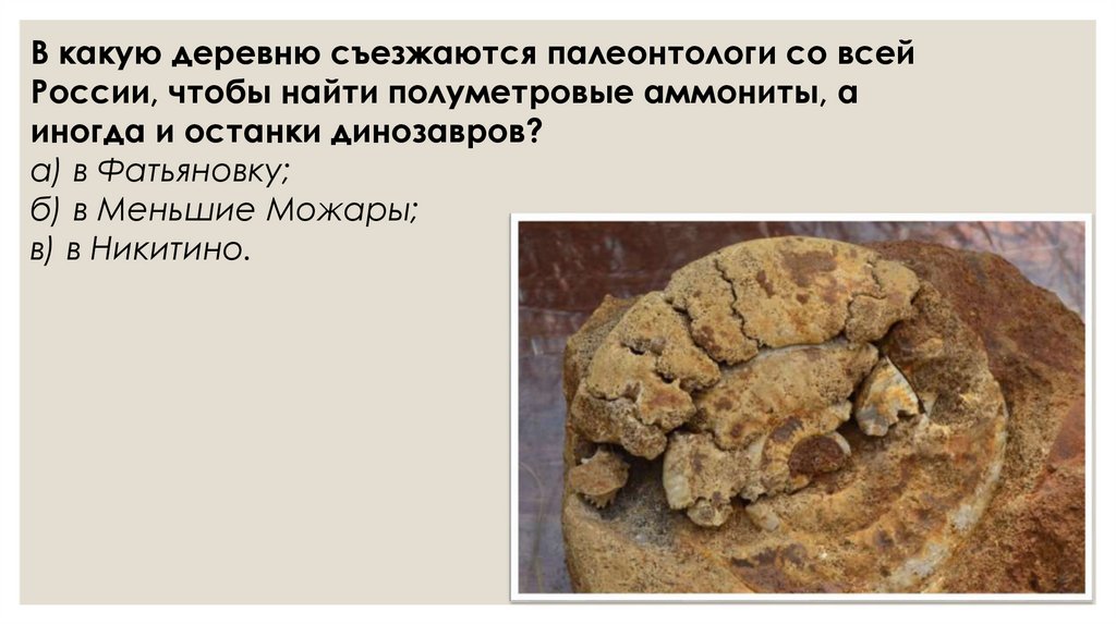 В какую деревню съезжаются палеонтологи со всейРоссии, чтобы найти полуметровые аммониты, а