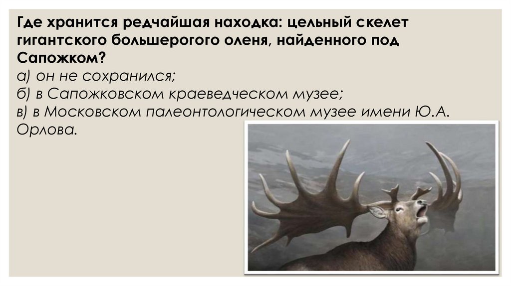 Где хранится редчайшая находка: цельный скелетгигантского большерогого оленя, найденного под