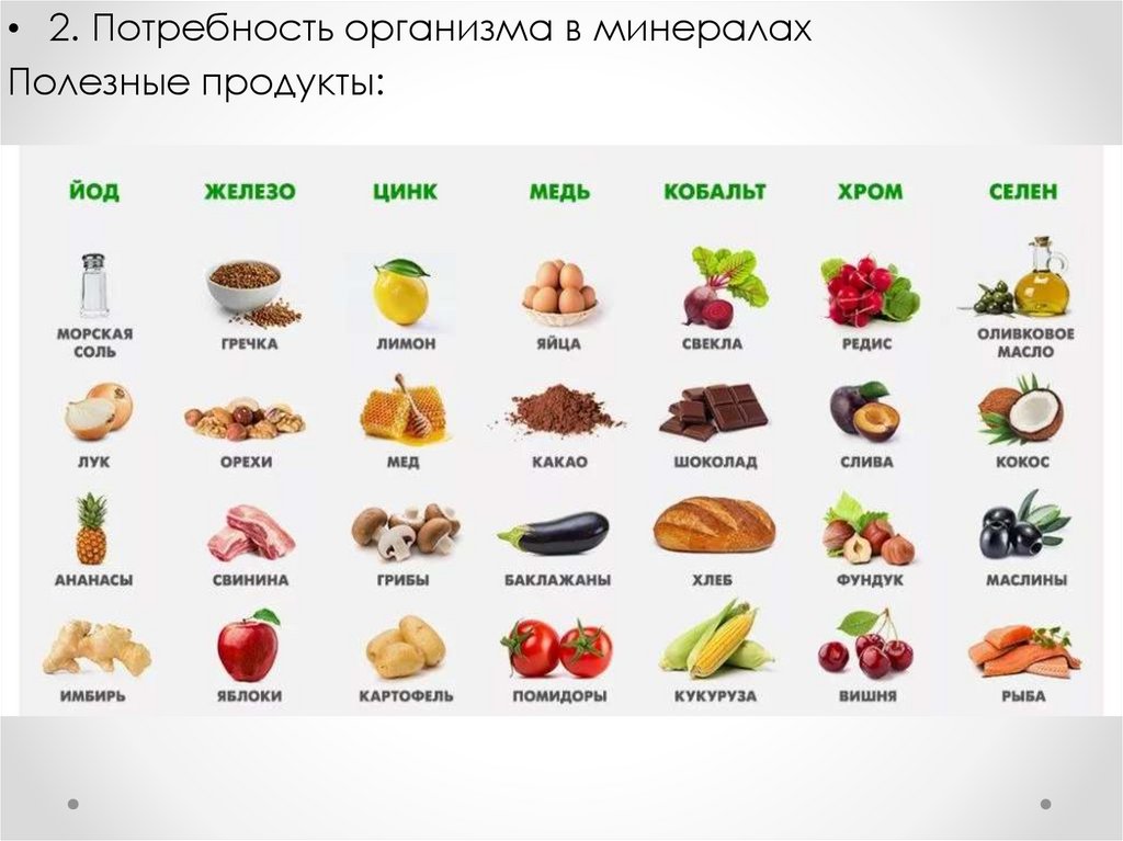 • 2. Потребность организма в минералахПолезные продукты: