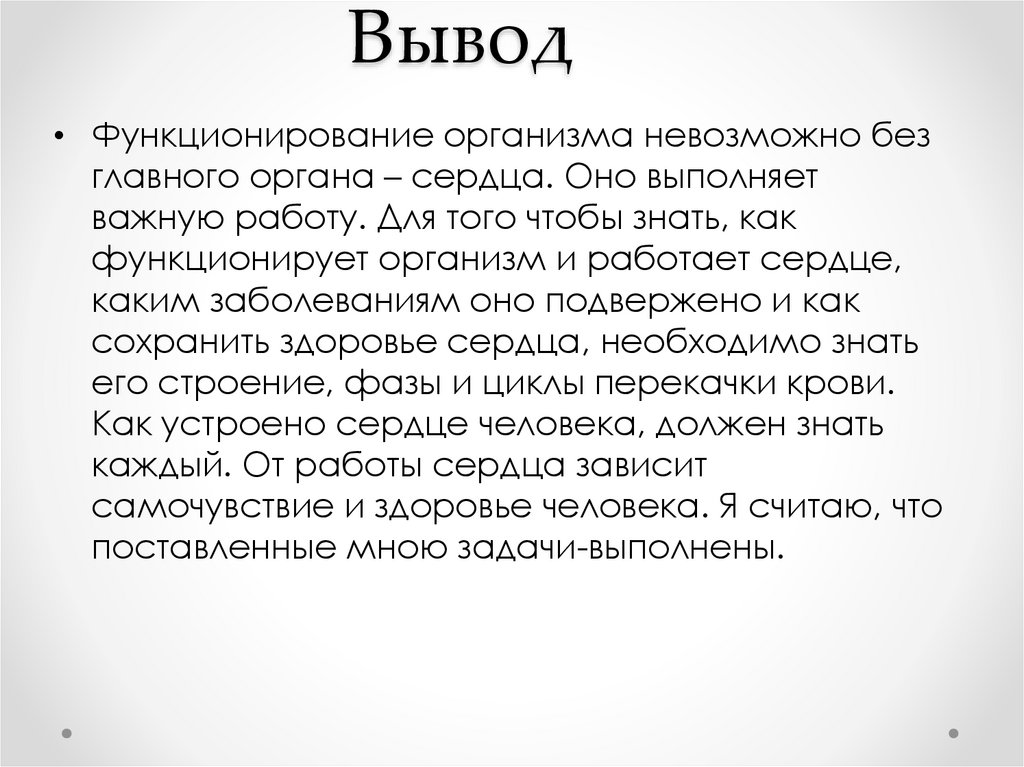 Вывод• Функционирование организма невозможно без