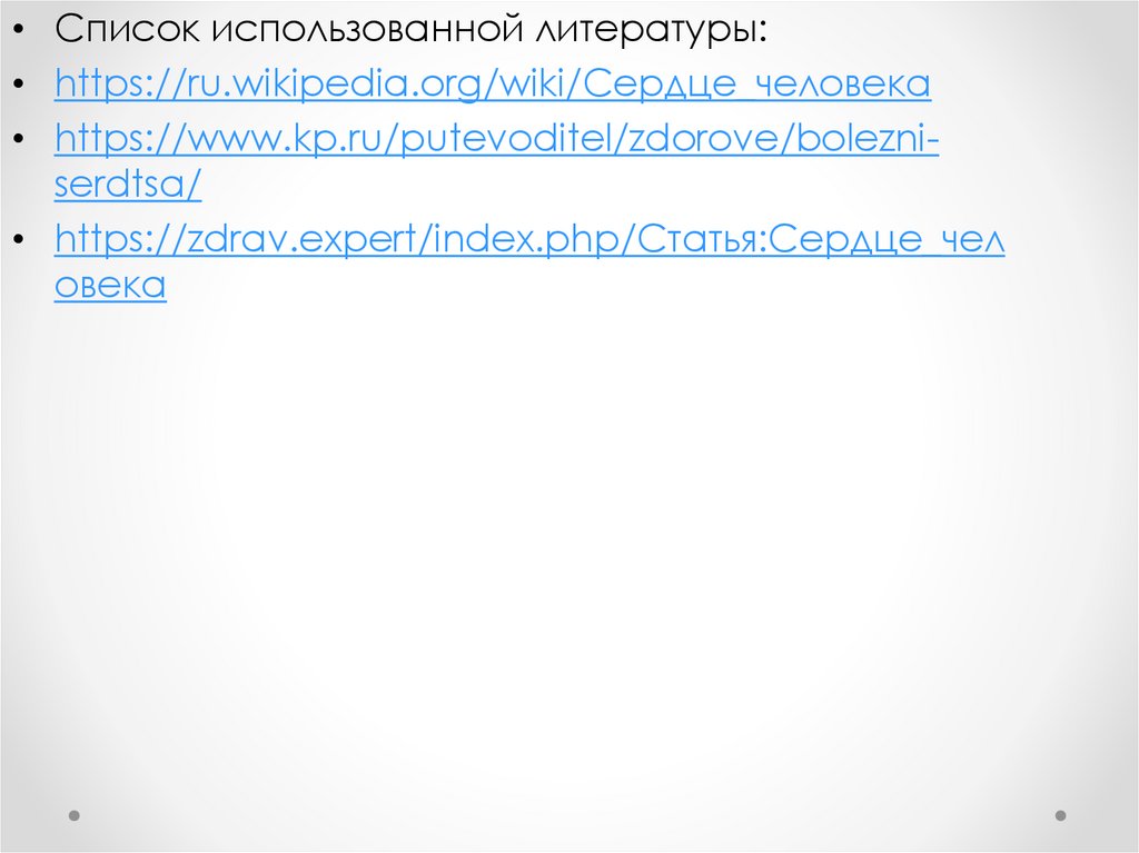 • Список использованной литературы:• https://ru.wikipedia.org/wiki/Сердце_человека