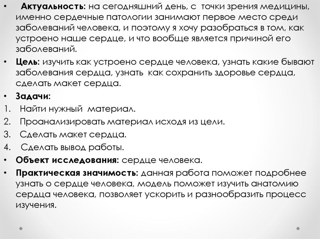 Цель: изучить как устроено сердце человека, узнать какие бывают