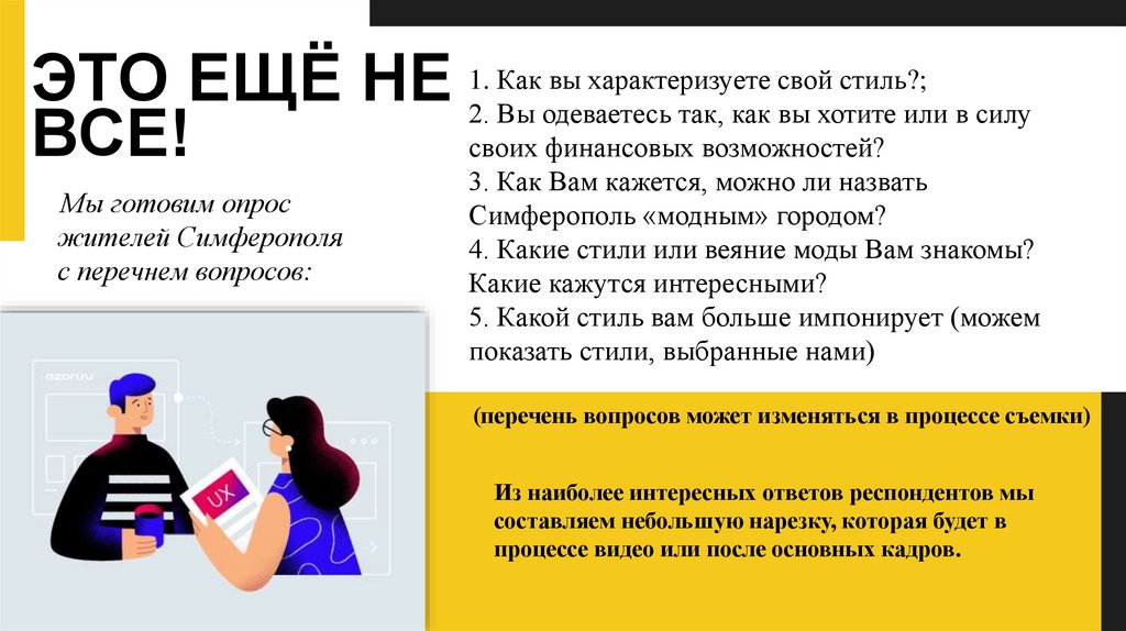 (перечень вопросов может изменяться в процессе съемки)